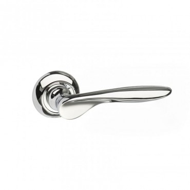 Mediterranean Malta Lever Door Handles on Radius Rose in Polished Chrome from Cookson Hardware.